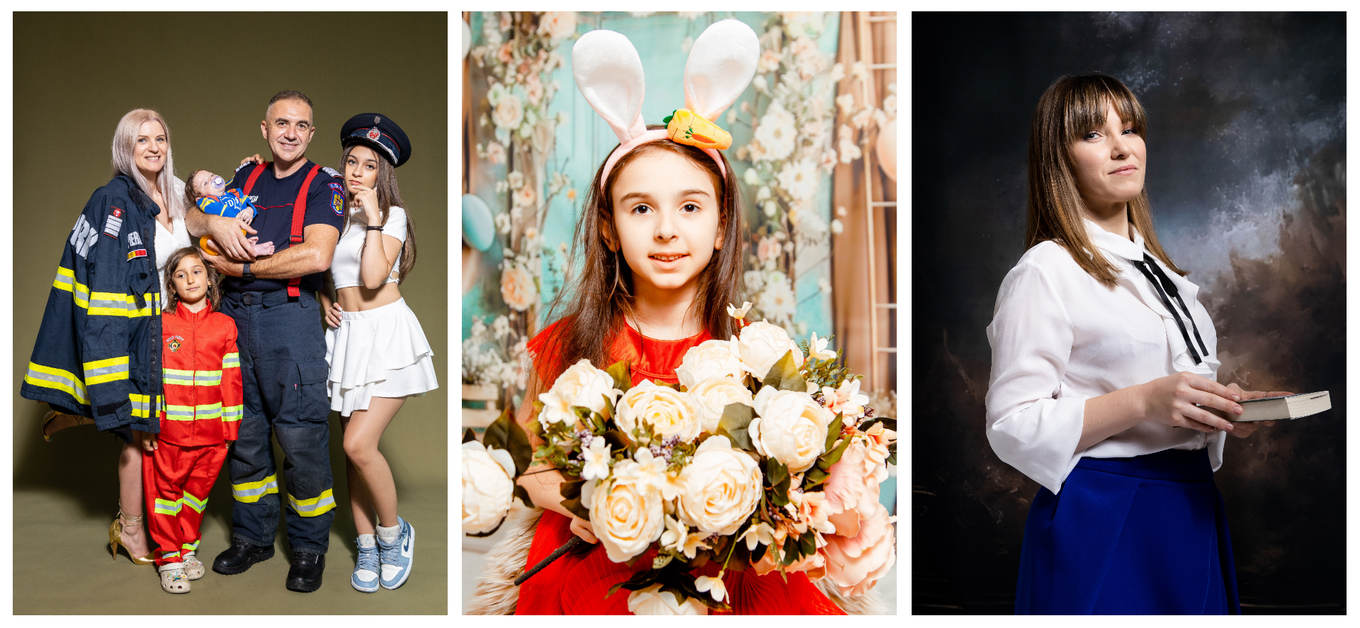 Adu cu tine mai multe variante pentru a oferi diversitate albumului tău. Fiecare ținută transmite un mesaj diferit și îți va permite să folosești fotografiile în contexte variate — site, rețele sociale, materiale de marketing.