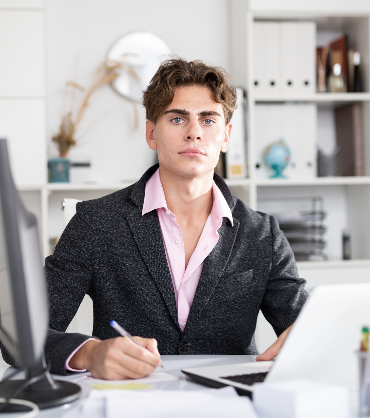 Costum, sacou, rochie elegantă sau bluză + pantalon — pentru imaginea profesională. Ideală pentru hero shot pe site sau LinkedIn.