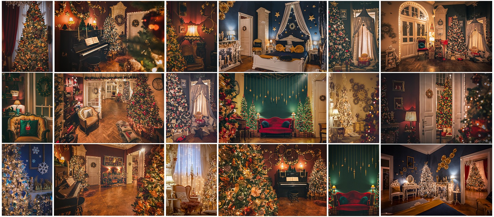 Ședințele foto au loc într-o locație special amenajată cu decor real de Crăciun, nu fundaluri artificiale.
